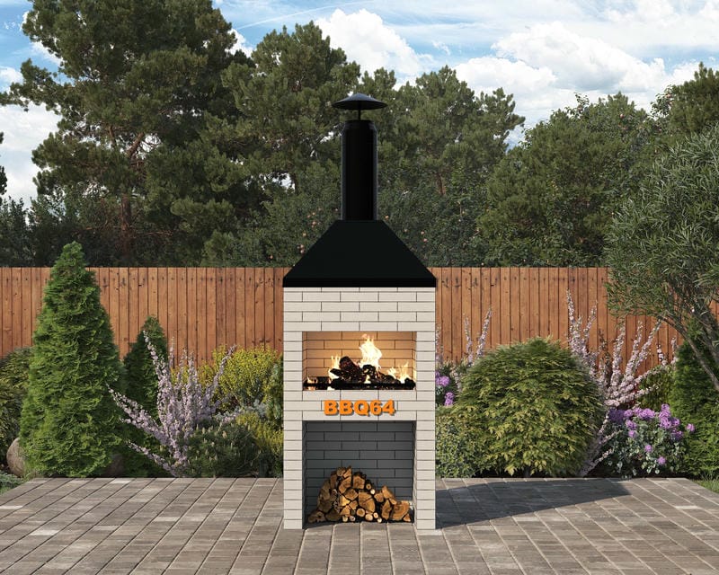 Вы можете разместить модульные печи барбекю на открытом воздухе, так как фасад покрыт декоративной штукатуркой, которая защитит барбекю от внешнего воздействия окружающей среды. Помимо этого можно осуществить установку элементов для приготовления пищи в беседке или на террасе с навесом с помощью переходника на сэндвич трубу. Такой переходник позволит безопасно вывести дымоход сквозь кровлю. За счет двойной трубы с утеплением(сэндвич) вы можете осуществить отвод дымовых газов  и увеличить тягу воздуха, что поспособствует большей теплоотдаче от углей или дров. Комплекс из бетона может состоять из мангала, печи под казан, тандыра, столика с мойкой и углового столика.