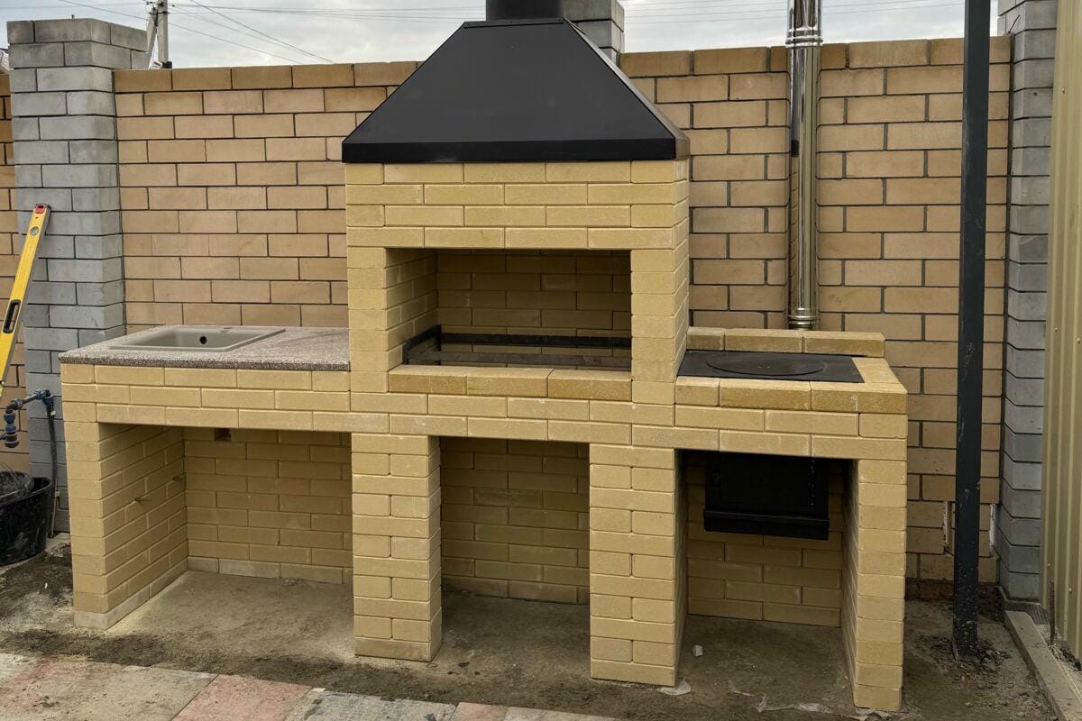 Мангал "BBQ64" с печью под казан разделочным столом и мойкой солома кирпич